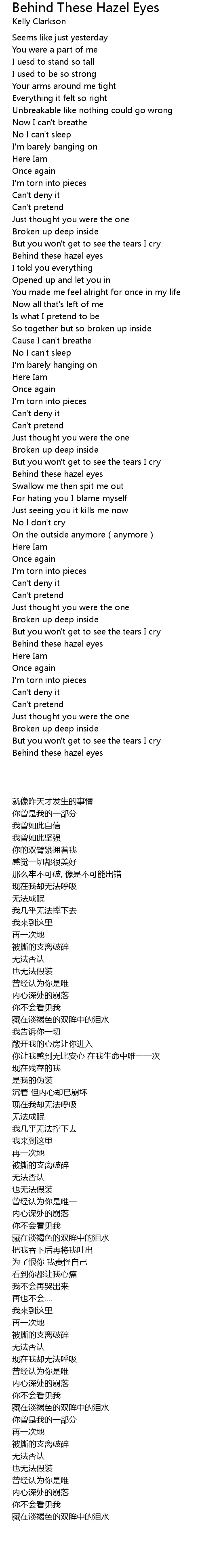 Behind These Hazel Eyes Lyrics ... | 500x3880 px